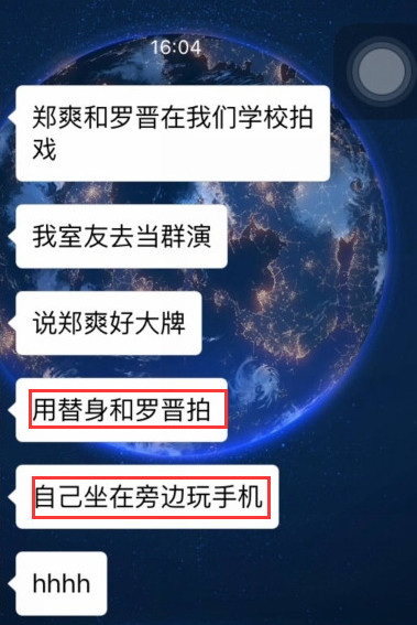 Today, a netizen exposed that Zheng Shuang was acting like a diva on set. She sat playing on her phone while her stand in filmed with Luo Jin. The netizen revealed a photo of the stand in.
