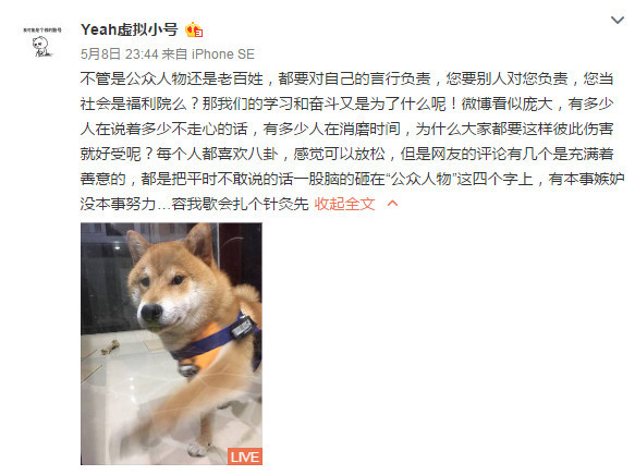 CONTEXT: Zheng Shuang does not not have an official verified weibo account, however, she does have an unverified account. She has never confirmed to be hers yet everyone knows it's hers as her dad has tagged that account. Zheng Shuang regularly uses that account to answer questions and criticise the media and her haters. Compared to her sweet public image this weibo account is quite sassy.